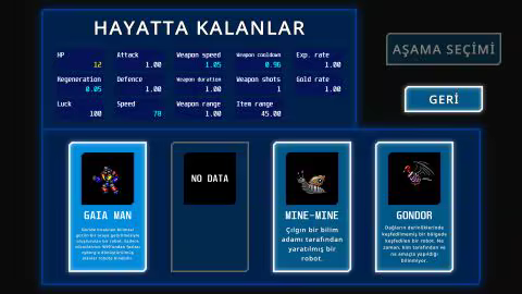 Çeşitli robotları kontrol edin ve yok olan dünyayı kurtarmak için uzaydan gelen istilacıları yok edin! "GAIA Survivors", retro-fütüristik bir dünya görüşüne sahip 'Shoot 'Em Up' tipi bir bilim kurgu haydut-lite gündelik oyunudur.