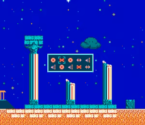 Once the input is complete, press the Start button to attempt a password match. If the password is correctly matched, the game will jump to the corresponding level. Press the Select button to return to the title screen.