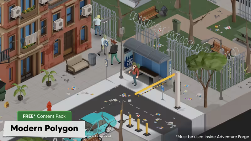 Kickstart your creativity with free, ready-to-use content. Adventure Forge includes four free content packs right out of the box: Polygon Sci-Fi, Polygon Modern, Polygon Fantasy, and the original story-rich world of Tales of Fortunata set in an alternate history Renaissance Venice.