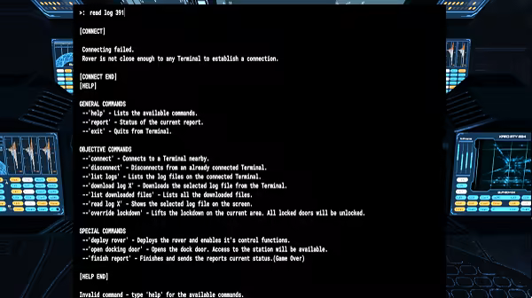 • Use your rover as a communication bridge to be able to connect to the station's terminals from your Shuttle's computer. Download log files in order to grow your report