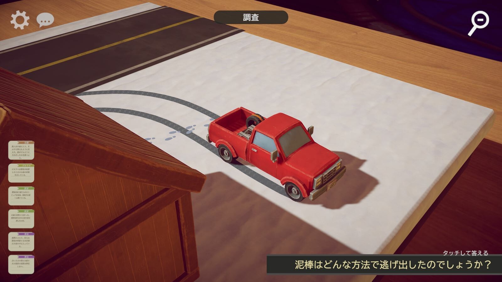 小さな犯罪現場ジオラマを調査し、目撃者の証言を読み取ろう。犯人たちが仕組んだ巧妙なトリックを、あなたの推理力で暴き出しましょう。