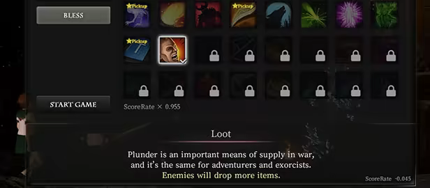 Upon completing a playthrough, players receive a score based on their performance. Depending on the accumulated score, new "Loadouts" and "Boons (Blessings/Curses)" are unlocked. If the game feels too difficult, you can make it easier, or if too easy, add more challenging conditions.