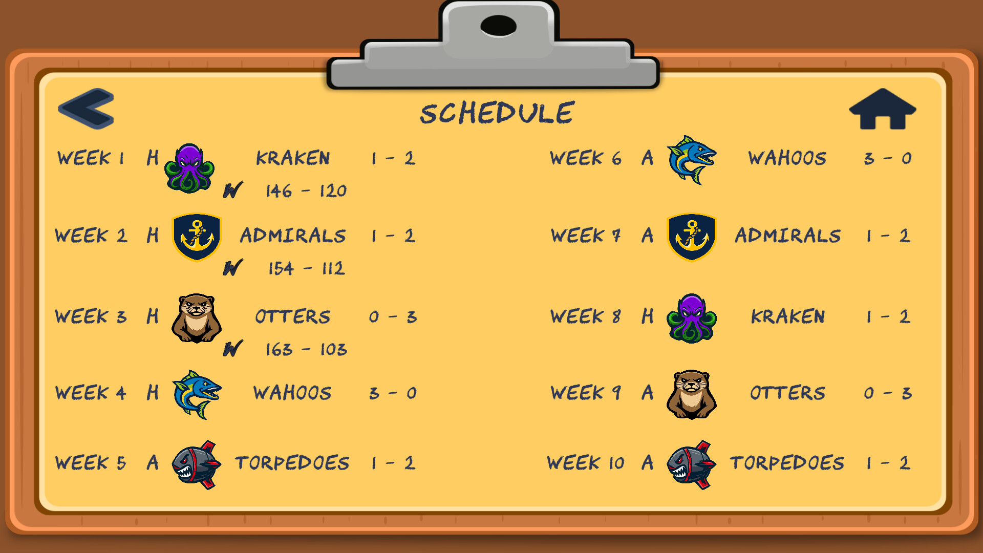 Choose which events you want each swimmer to compete in to have the best chance of winning each meet. Choose which swimmers to cut when new recruits are added.