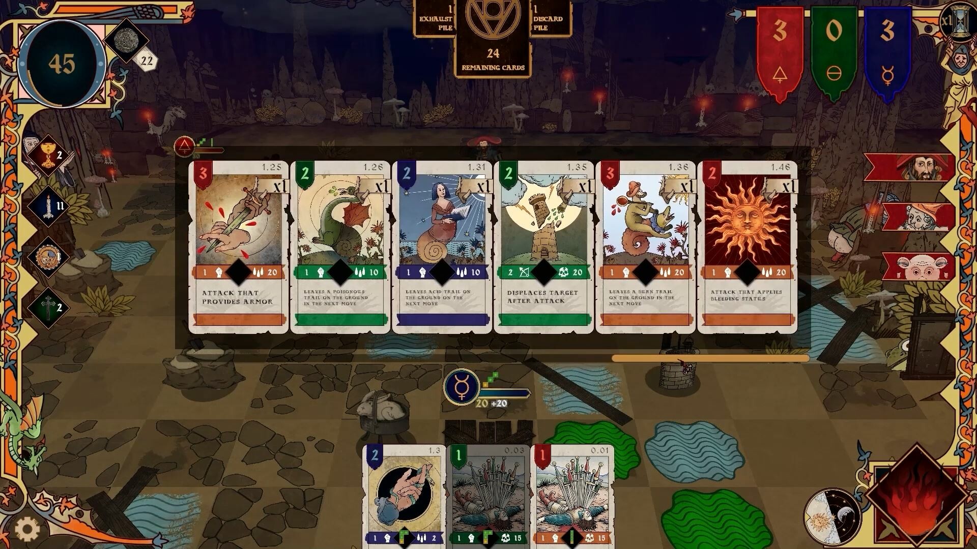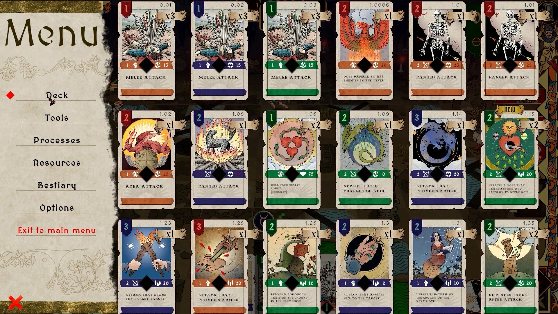 Hermetica is a roguelike turn-based card game. Players start with a basic set of cards and must build their perfect deck, upgrade it by practicing Alchemy and use it to defeat mythical beasts and powerful enemies. Each card collected opens new opportunities in combat.