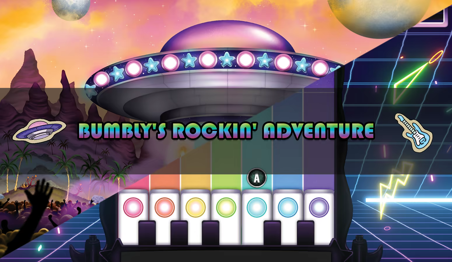 A Mad Libs-inspired rocking saga! Players fill out simple Madlib questions at the start of each round and then write their own sentence with a random players mad-tags in the middle of it! Rock out to our Guitar Hero inspired minigame called Keytar Adventure and feel like a true intergalactic rock icon!