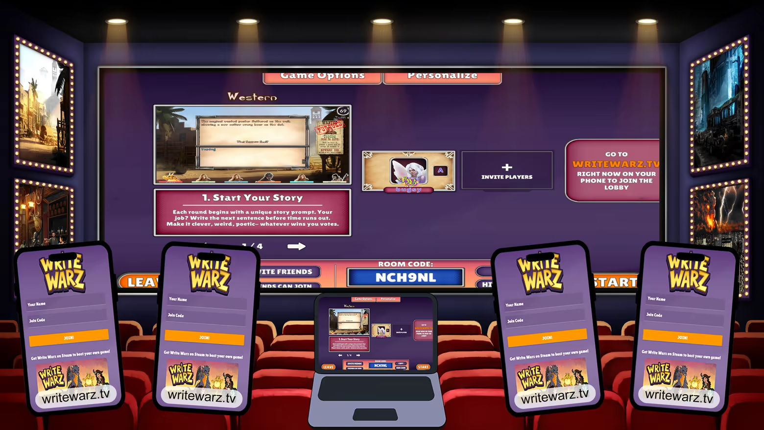 Write Warz is a story-building party game built for one to six players.