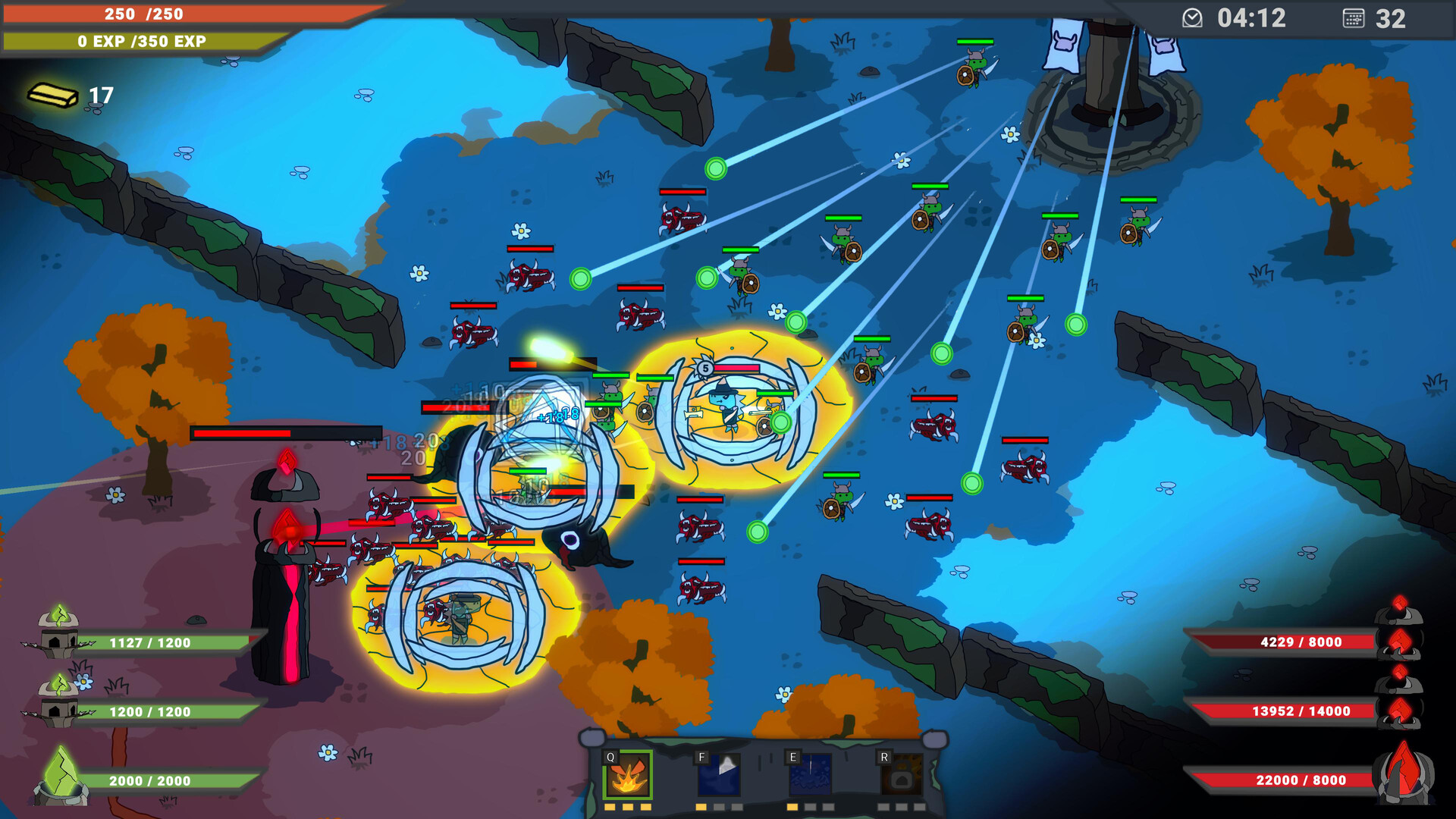 In Battle Arena, your goal is to destroy the enemy barracks and prevent the alien hordes from destroying your own. Armed with 4 Weapons and 4 Abilities, you fight, craft item builds and synergize them along with your Tiny Viking Soldiers and your Turrets.