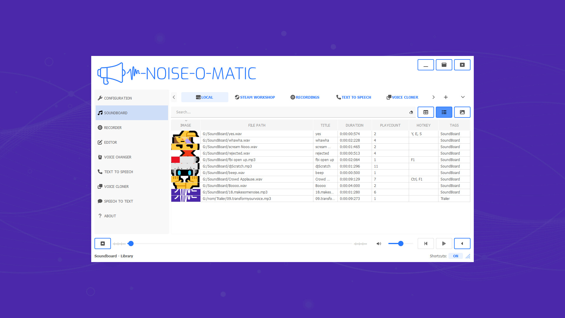 High-quality soundboard software for voice chats: play sounds, record & alter your voice in real-time in any application or game! Add music and sounds to your microphone for others to hear. Text-to-speech feature included. Steam Workshop natively supported! Lets make some noise!
