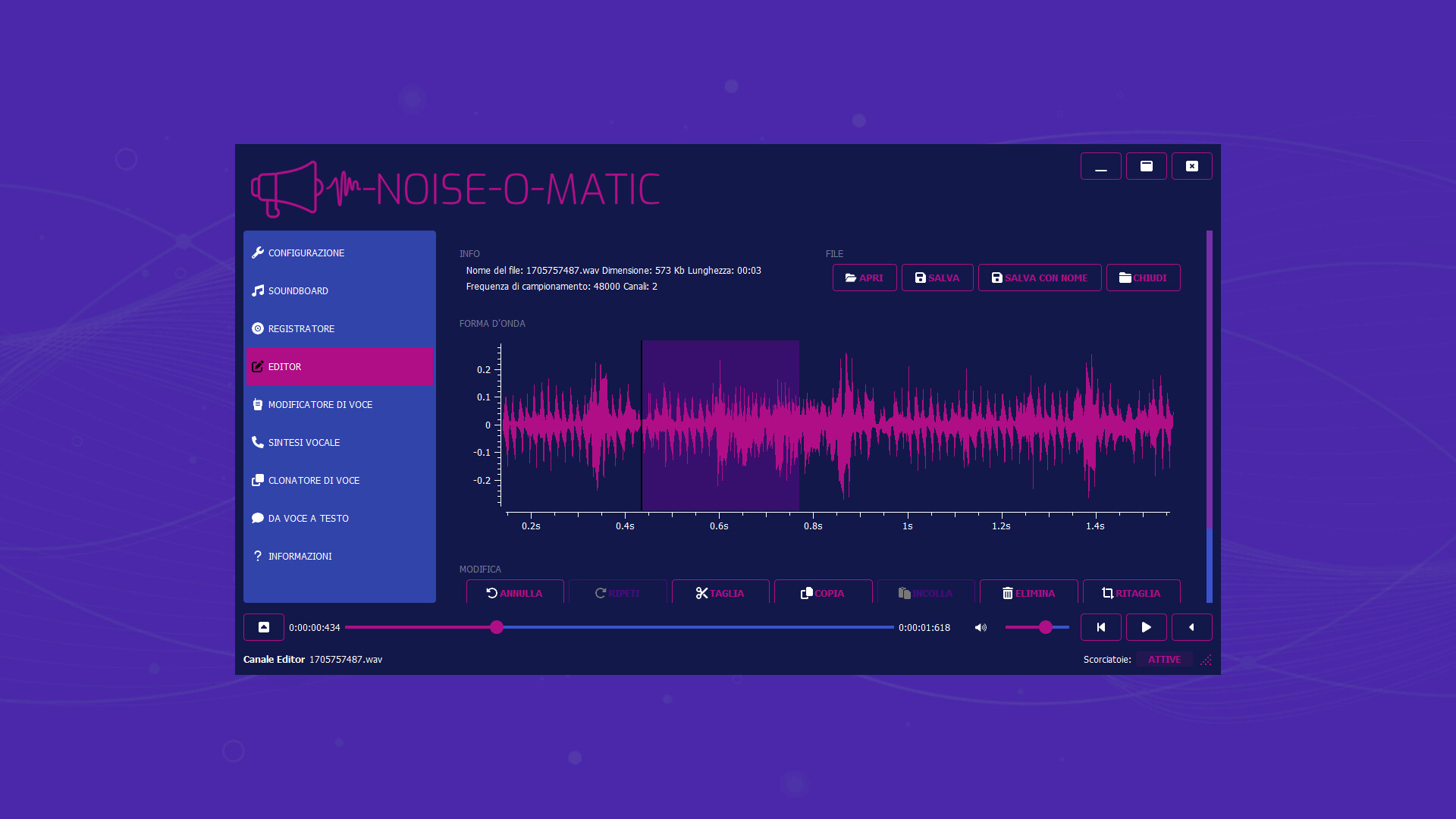 Registra e modifica i suoni senza sforzo. Cattura ciò che senti e ritagliali secondo le tue necessità grazie all'editor integrato. Avrai il controllo perfetto del tuo audio in un unico software.