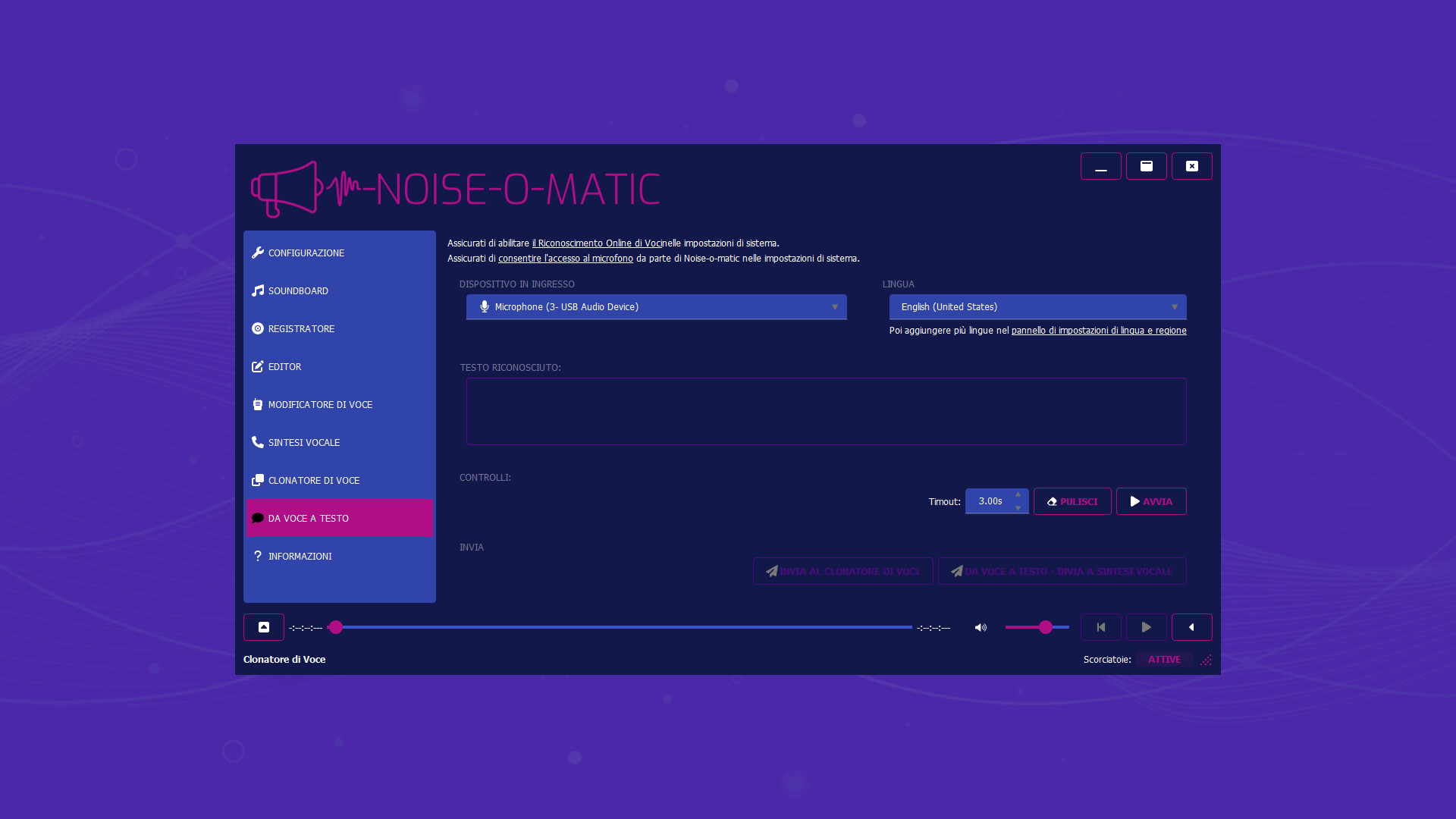 E' necessario un microfono per utilizzare Noise-o-matic, cosi' come un dispositivo di uscita.