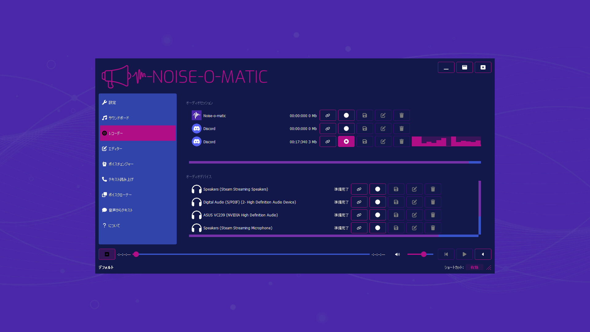 Noise-o-matic を使用するには、出力デバイスだけでなくマイクも必要であることに注意してください。