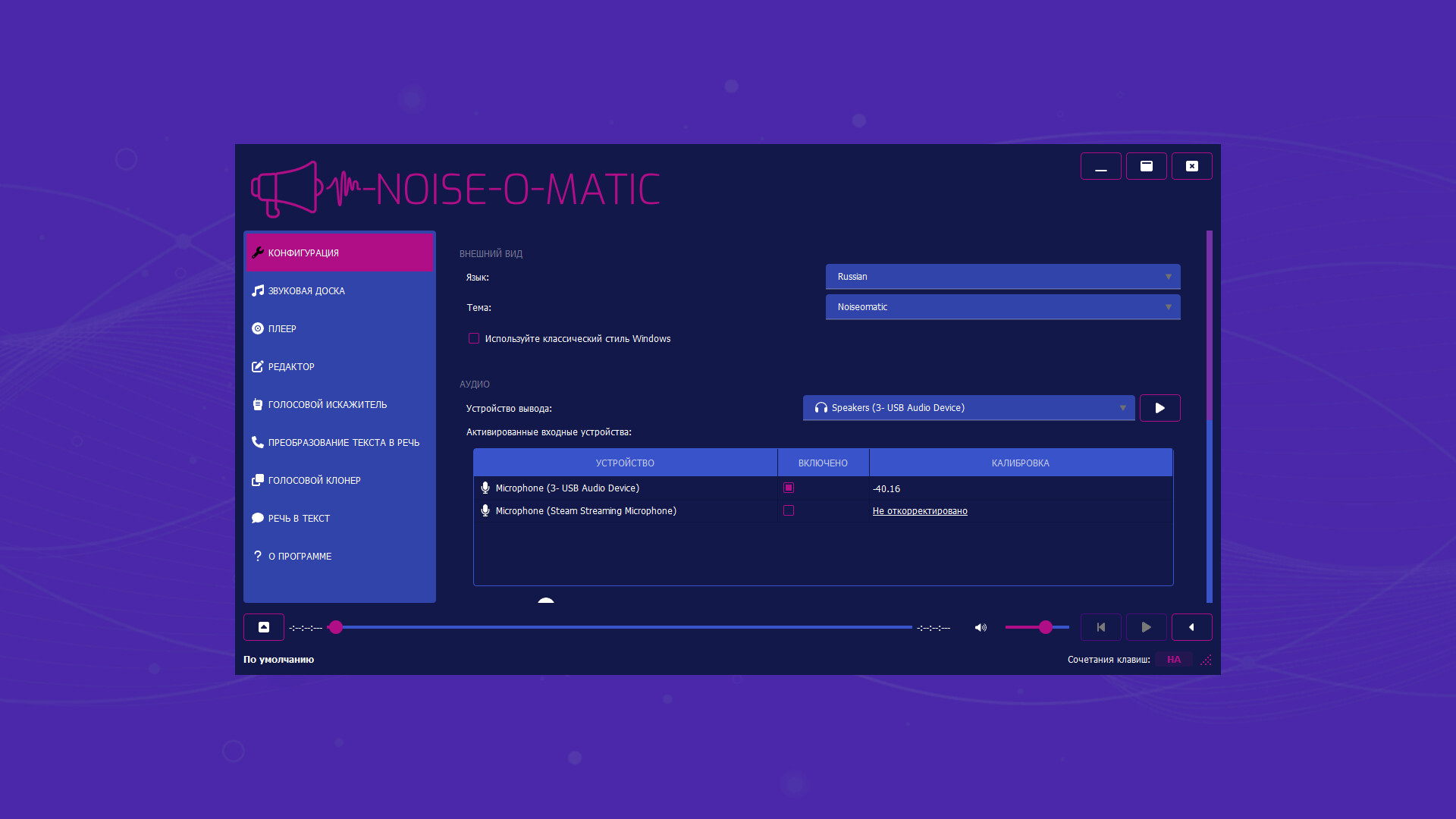 Обратите внимание, что для использования Noise-o-matic требуется микрофон, а также устройство вывода.
