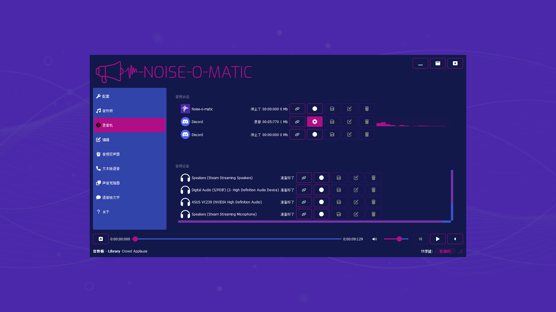 通过Noise-o-matic,您可以轻松地将任何音乐或声音添加到任何语音聊天中,无论您是否在Discord、Skype或游戏中。它会连接到您的麦克风流,为您提供将令人赞叹的音效个性化应用于对话的能力。让我们制造些噪音吧!