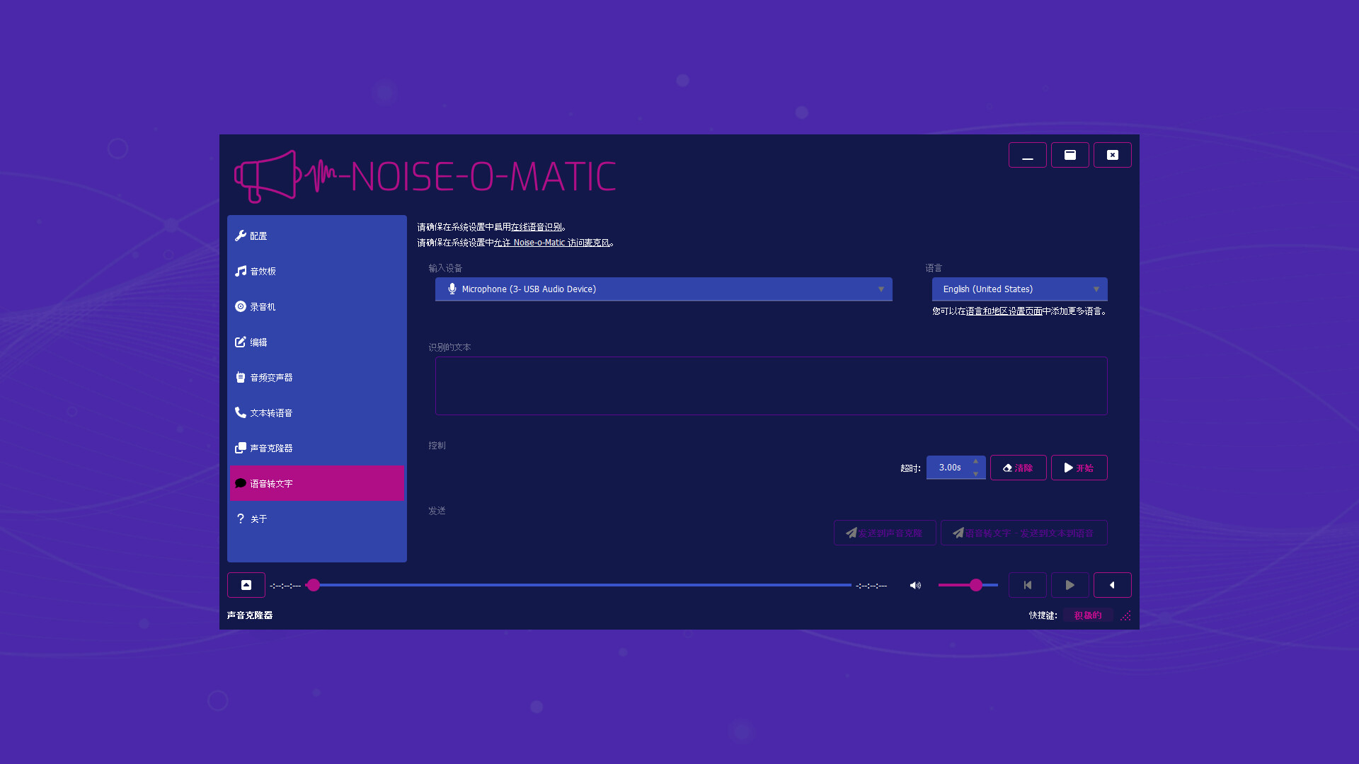 请注意,使用 Noise-o-matic 需要麦克风以及输出设备。