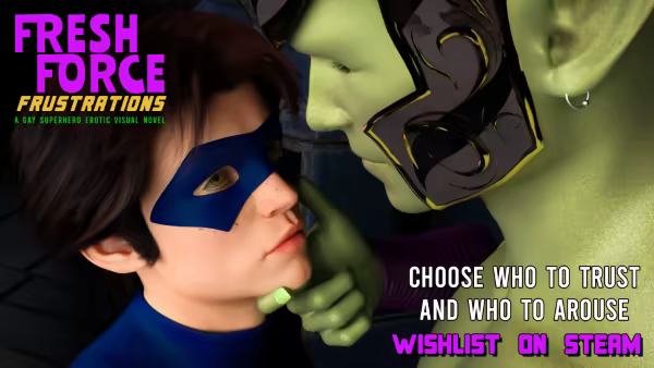 A creature attacks Fresh Force headquarters, leaving the team trapped, unable to get physically aroused, and with a traitor in their midst. Get back your ability to get off! Multiple endings, steamy gay action, plus spandex, tentacles, and more!