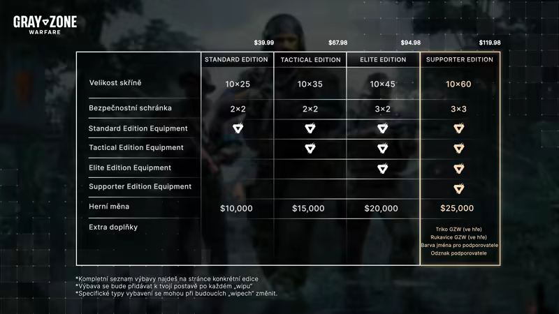 Obsahuje následující položky (celkem 3): Gray Zone Warfare - Tactical Edition Upgrade, Gray Zone Warfare - Elite Edition, Gray Zone Warfare - Supporter Edition