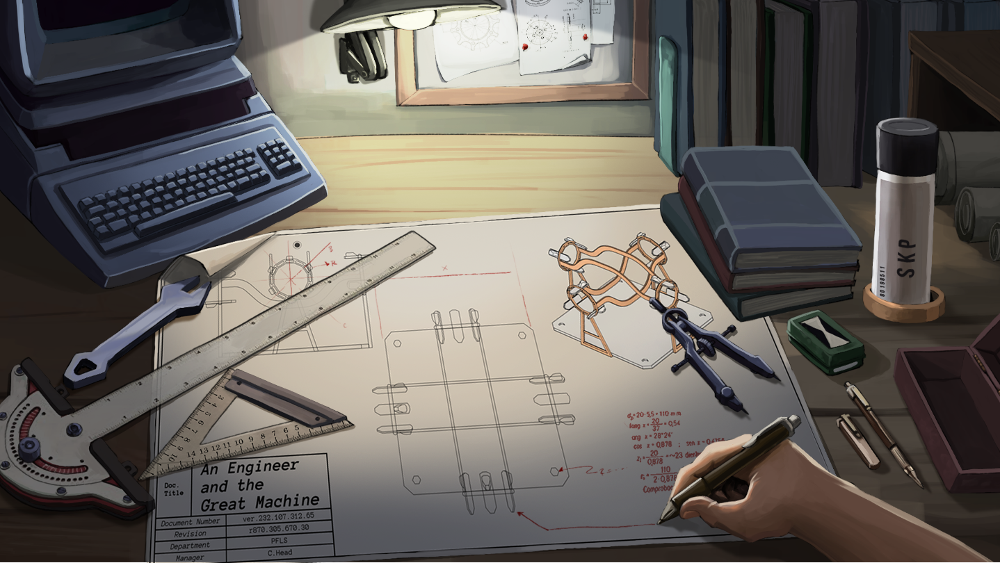 You, a new engineer at SKP, have become entangled in the project known as ‘The Great Machine’, stakes are high and instructions unclear. Design systems, decipher the red tape, and unravel the plot without falling prey to the bureaucracy.