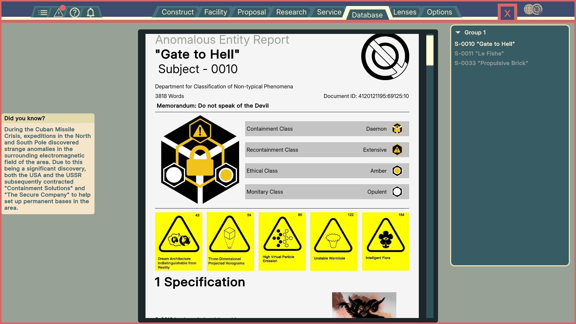 Design your containment solutions from the ground up with total creative freedom to tame ever-increasingly stubborn anomalies. You are only limited by your imagination. Anomalies come in all shapes and sizes, from small objects to large creatures, and will have a variety of abilities and powers that you can exploit to keep them at bay. Whether you choose to follow established containment procedures in the Corporation's database or forge your own is your authority.