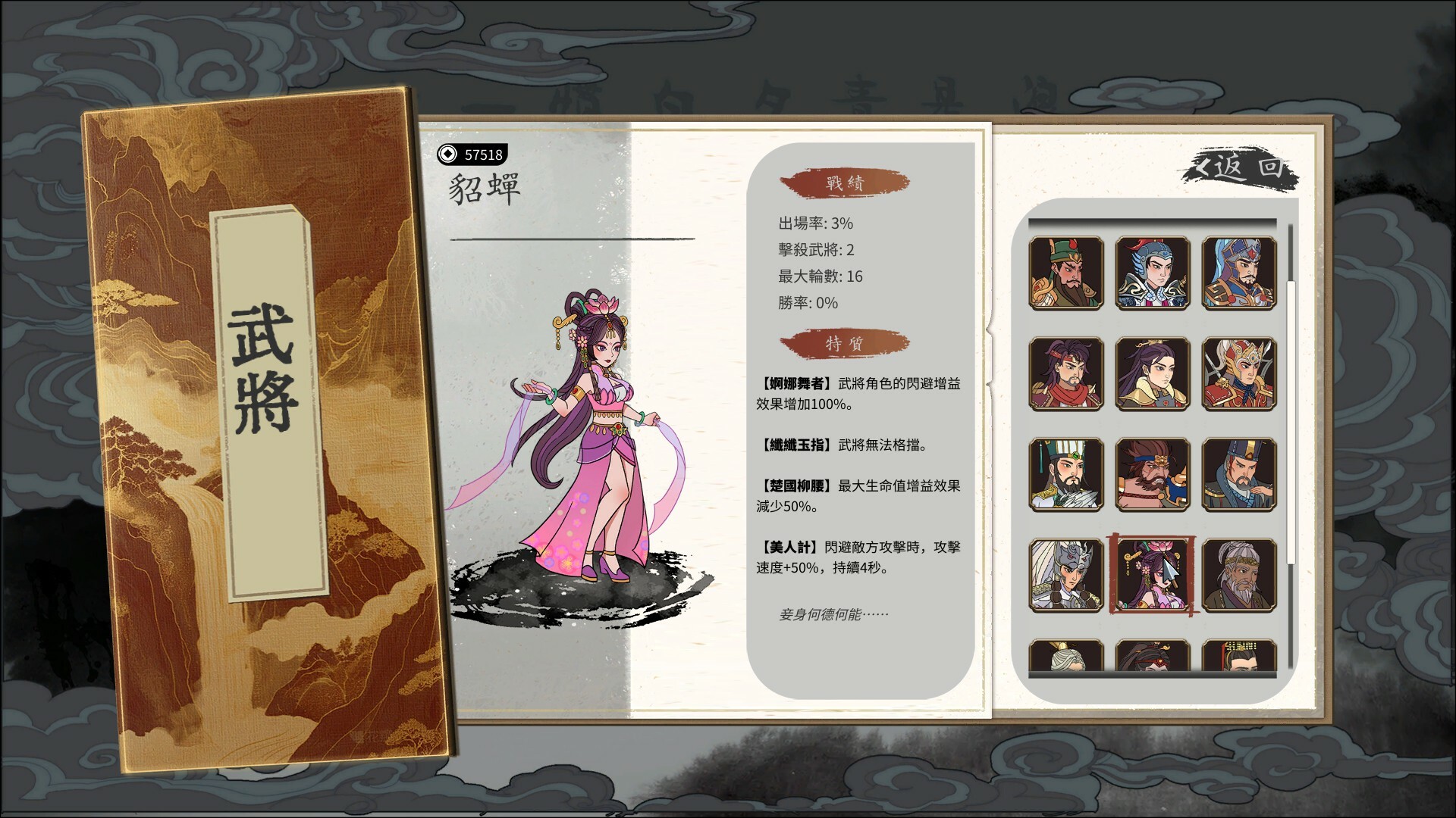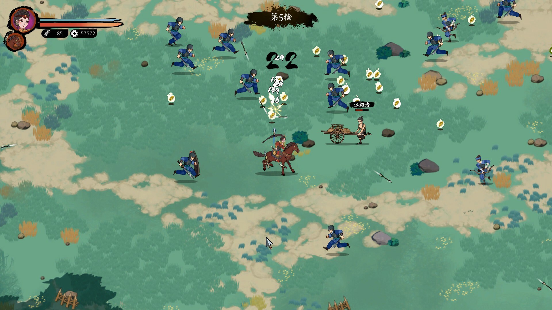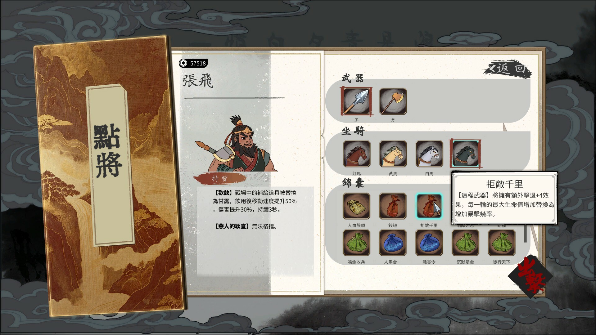 在瞬息萬變的戰場上,你需要靈活躲避敵人的攻擊,在混戰中殺出一條生路。每次擊敗敵人都能收集到錢糧,利用這些資源在下一波敵人到來前添置新的兵器和計策。同時升級坐騎,結合錦囊效果與角色特性,打造獨特的流派。