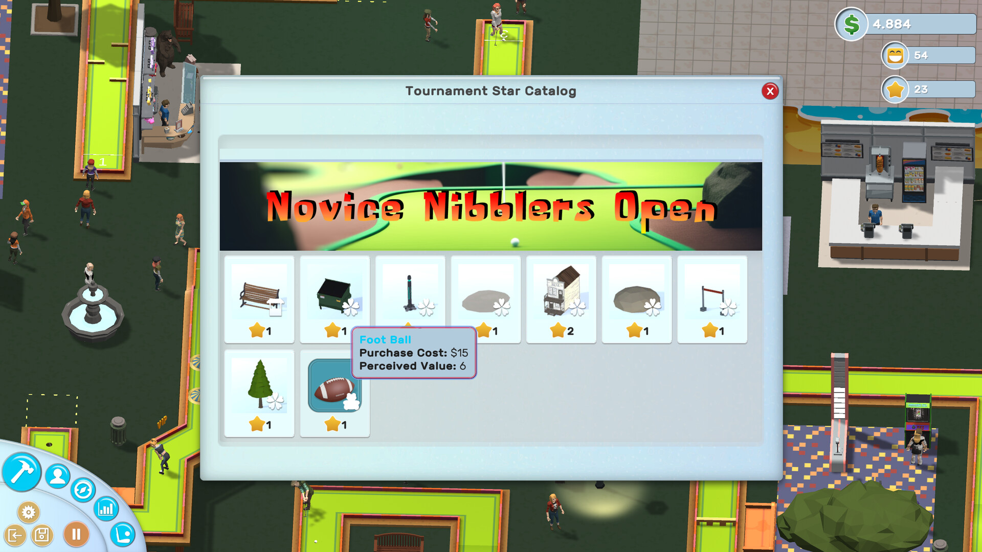 Keep your guests happy with great course designs and exciting arcade machines. If you can exceed their expectations they might become permanent members of your park. With enough members you can expand your building and lure V.I.P.s to your venue.