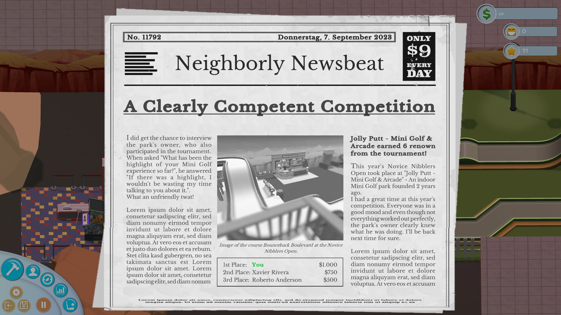 Jolly Putt is a classic tycoon game, where your job is to manage an indoor Mini Golf & Arcade. But you don't just get to design your own courses, you can actually take part in tournaments and play them yourself!