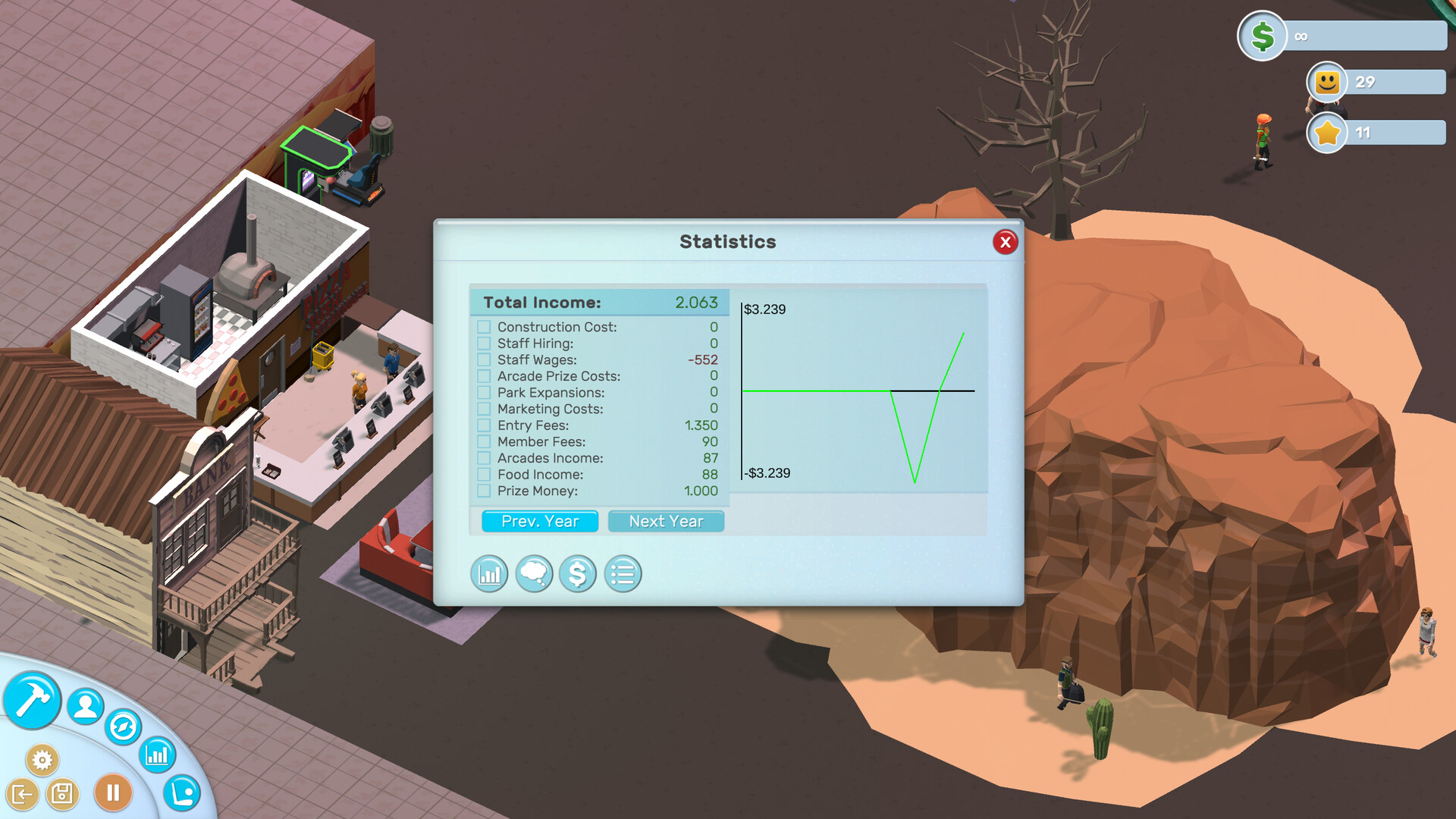 Keep your guests happy with great course designs and exciting arcade machines. If you can exceed their expectations they might become permanent members of your park. With enough members you can expand your building and lure V.I.P.s to your venue.