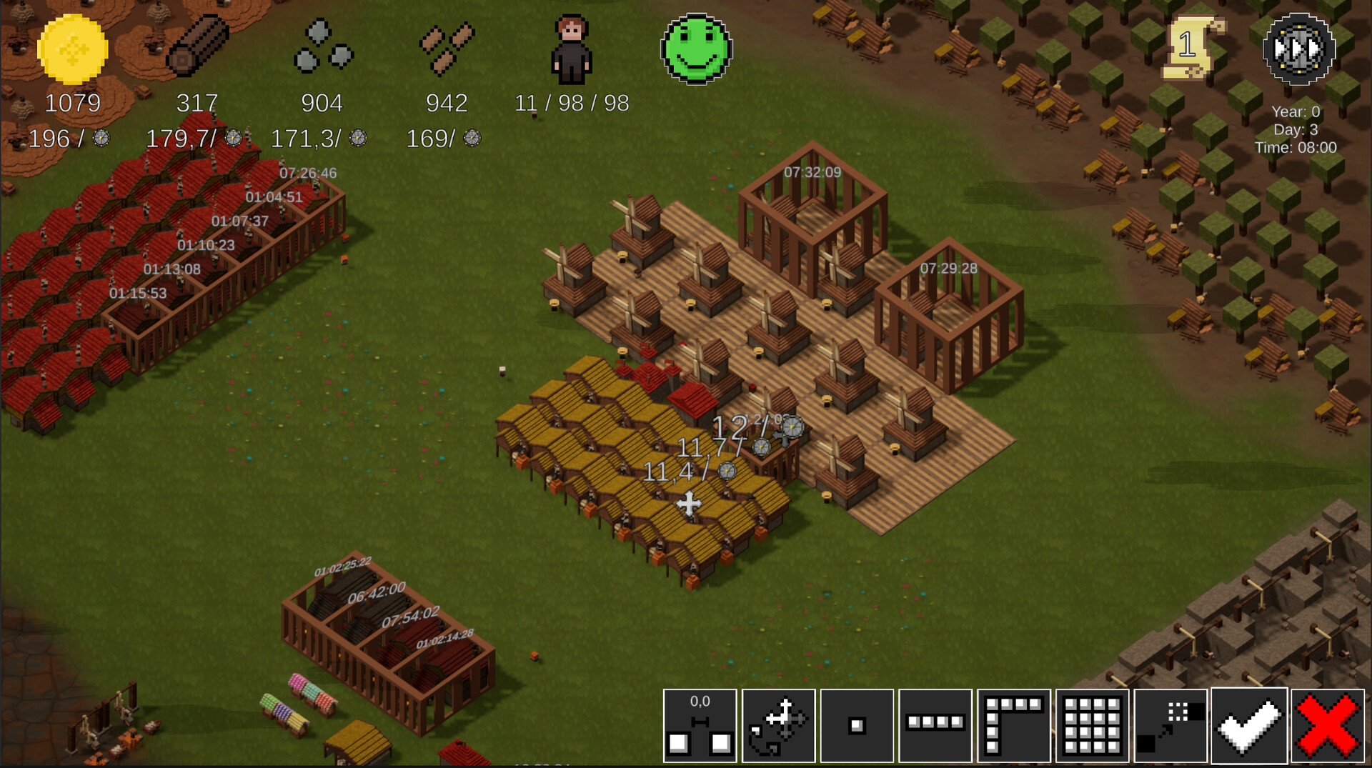As the leader of the village, you start out with just a few resources and a handful of loyal subjects. Your first step is to develop your village by constructing new buildings, mining resources and building production facilities.