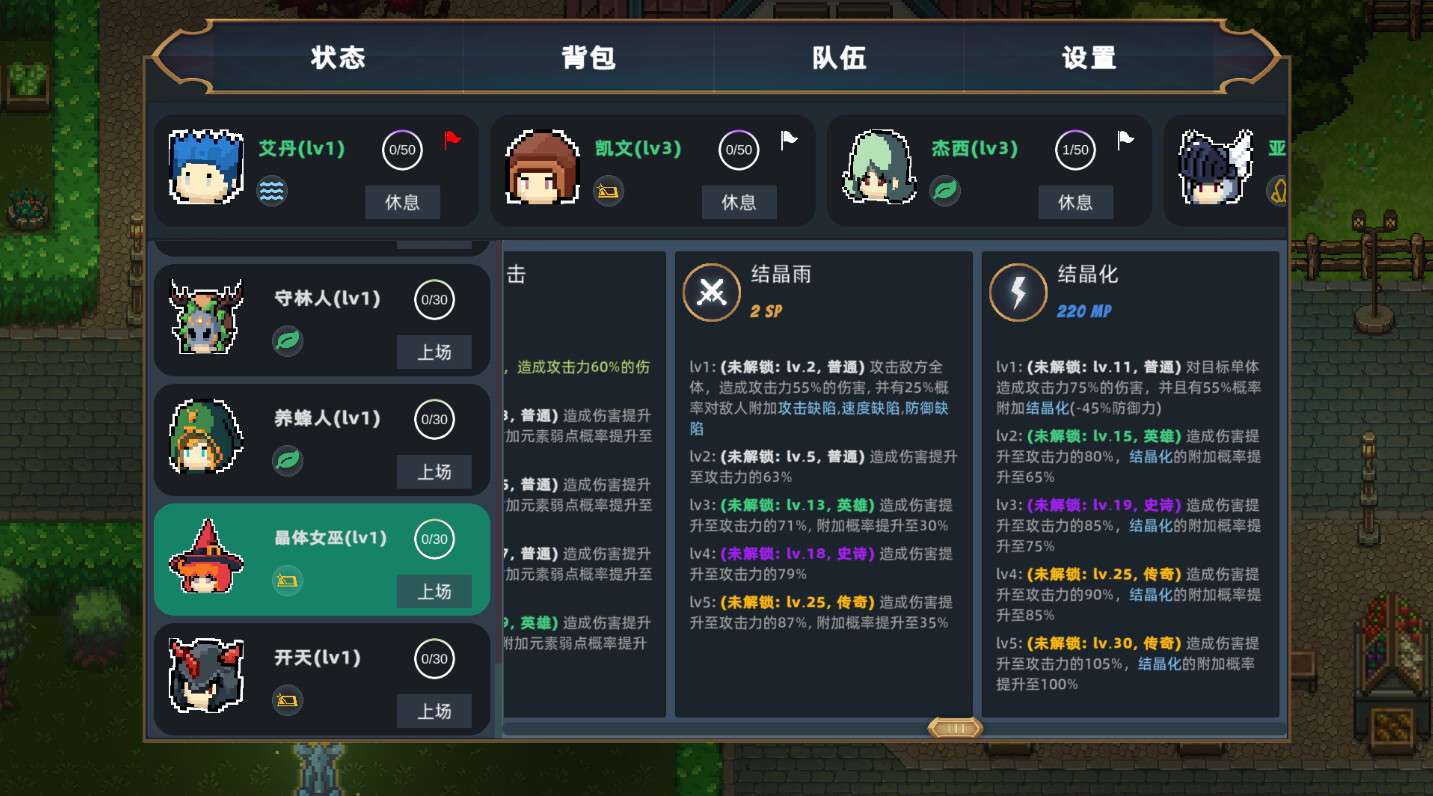 在游戏中,你将可以搭配使用27种角色,组成4人小队,共计108种可能性的队伍组合,去对抗围攻村庄的怪兽。你的任务是消灭怪物,保卫你的家园,维护村庄的和平安宁,同时怪物的等级将在一定范围内匹配角色的等级,因此怪物也会在角色成长过程中获得更强力的技能与属性。