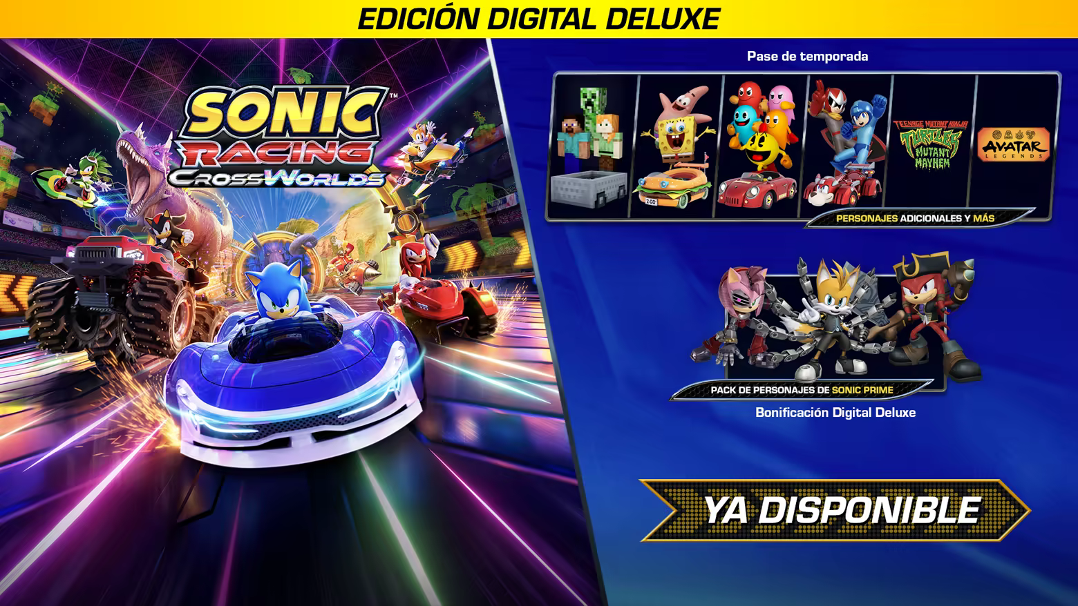 Sonic Racing: CrossWorlds contará con actualizaciones periódicas gratis que añadirán personajes, vehículos, música, sonidos y artilugios. Personajes del universo SEGA, como Joker, Ichiban, Hatsune Miku, AiAi y NiGHTS, se suman a la competición, con más personajes en camino.