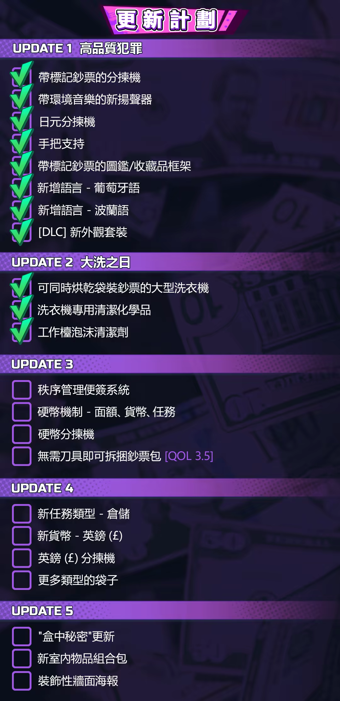 使用洗衣機、烘乾機、點鈔機和其他工具來清洗髒錢和區分假鈔等工作。當然,看見沾上各種奇怪汙垢或神秘“番茄醬”的鈔子不要瞎猜,遵循祖訓,老老實實幹活賺錢就行了!同時,你也可以通過財富積累去置辦新的設備,從而拓展業務規模,做大做強!