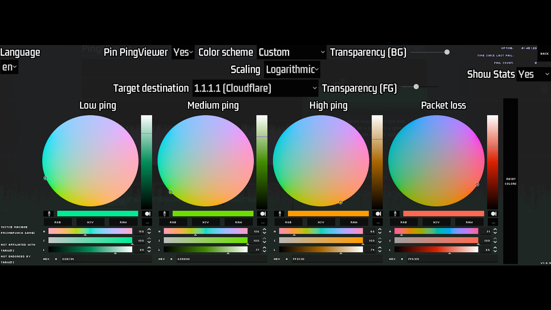 • Overlay any game or desktop environment by enabling "Pin PingViewer". (Fullscreen games running as administrator must be ran borderless or windowed)