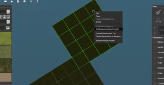 To add new baseboards, simply drag the Marquee off the edge of the existing baseboards, then select Set Marquee to Brush Height. This will create new baseboards at the current brush height.