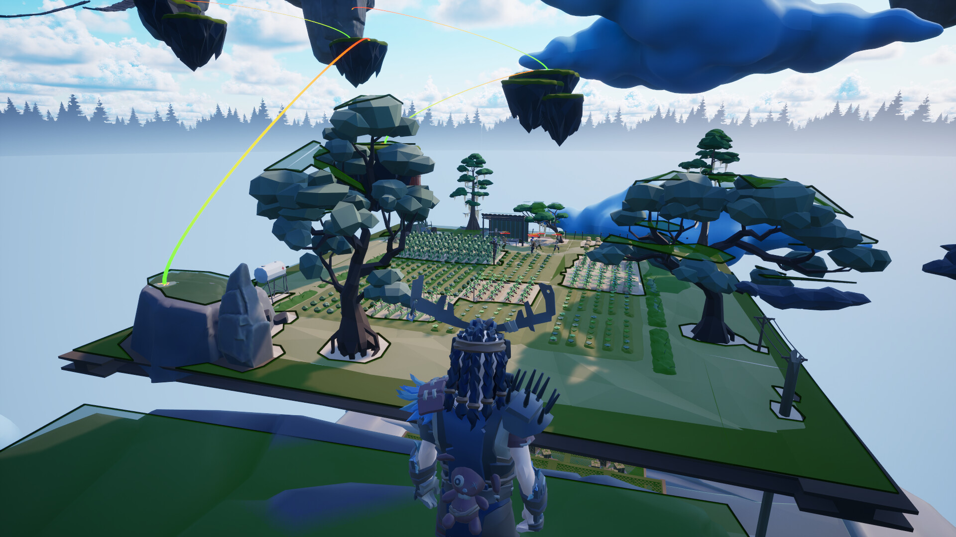 Sky City — When your structures break through the clouds, a whole new world unlocks. Build floating farms and shelters among the clouds to create your own self-sufficient sky settlement.