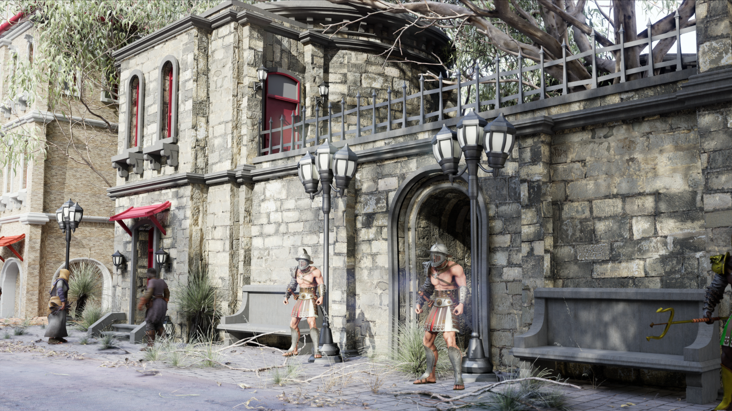 - Complex level design: Fight in a straight line with minions. With a building design of medieval style buildings and dense trees