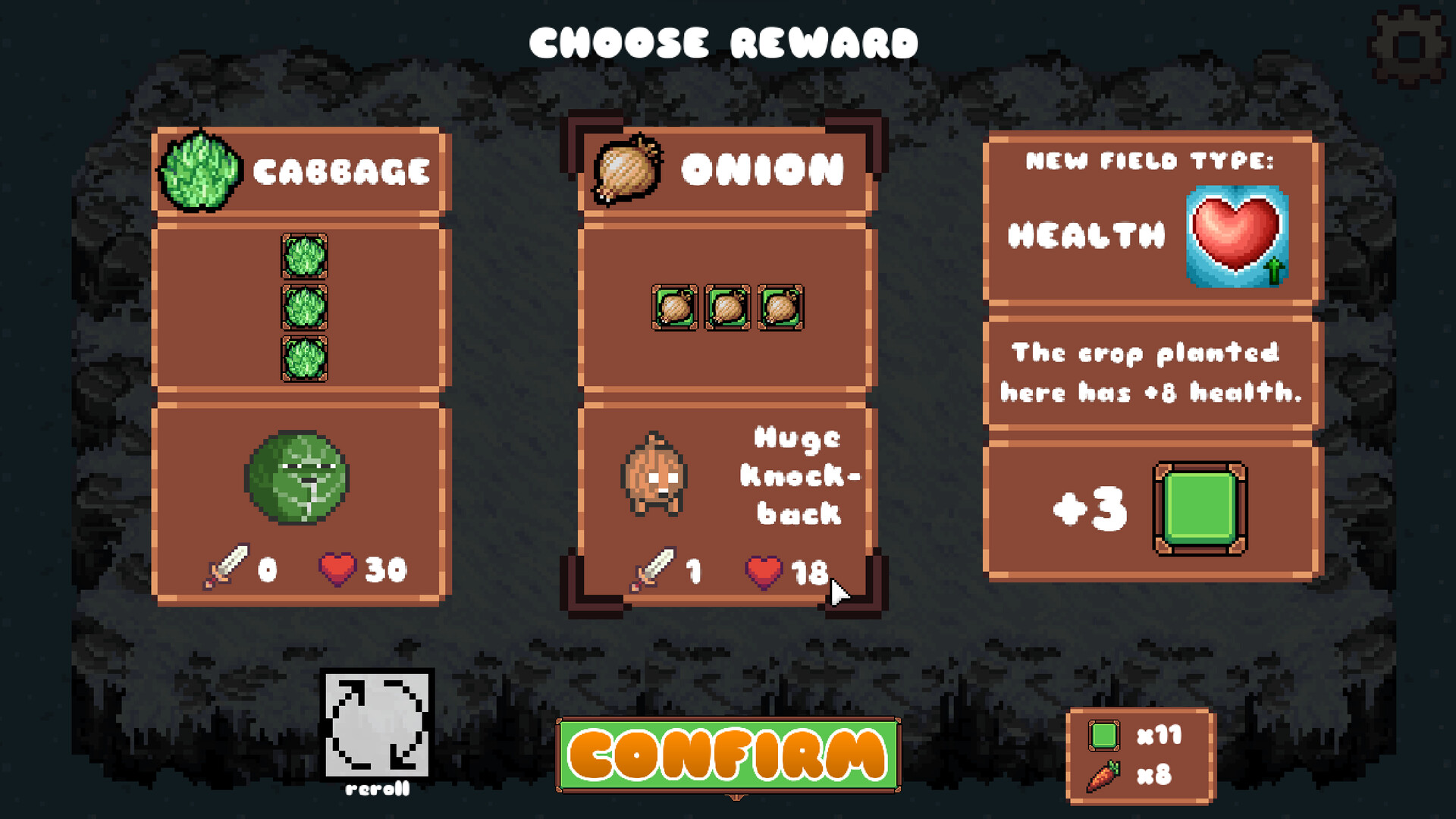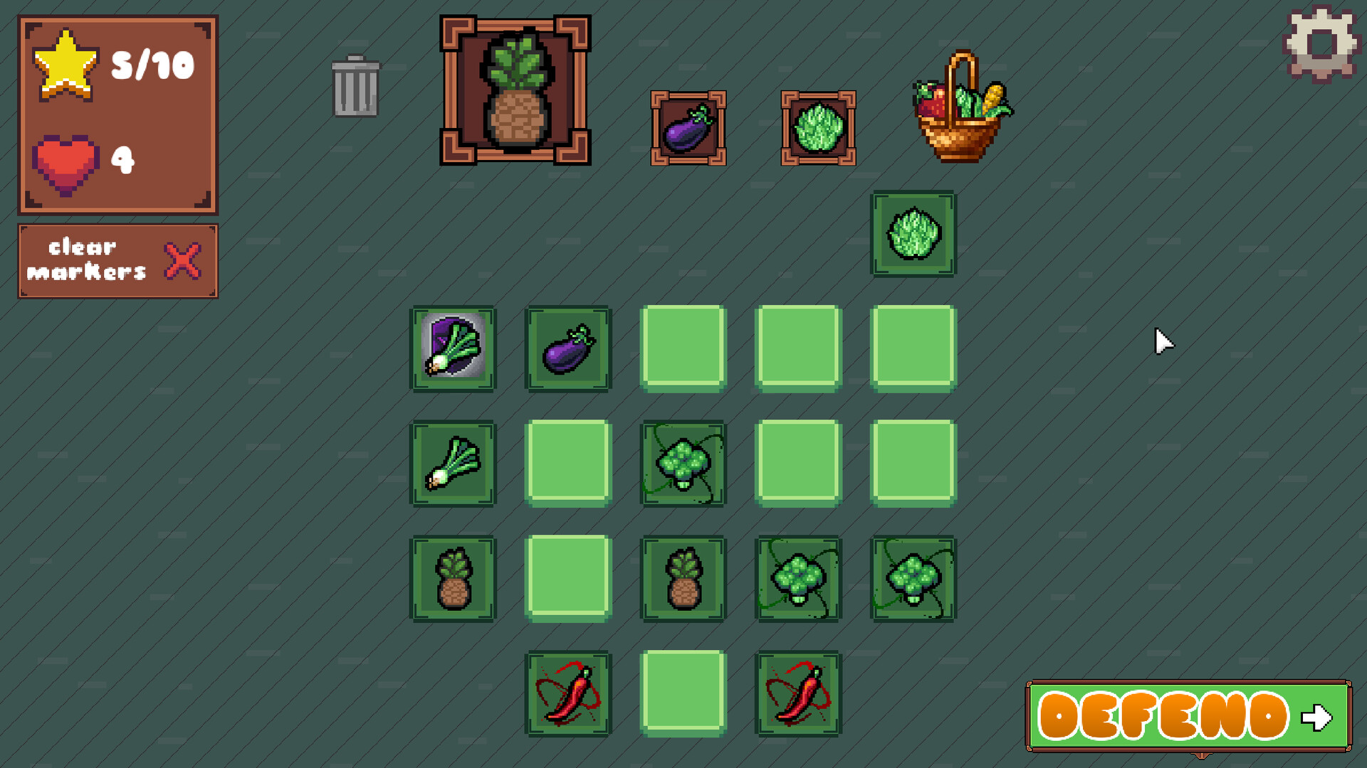 CROPS! is an autobattler in which your fruits and vegetables come alive! Plant your crops in specific patterns and place them strategically to defend against rats, kobolds and even dragons.
