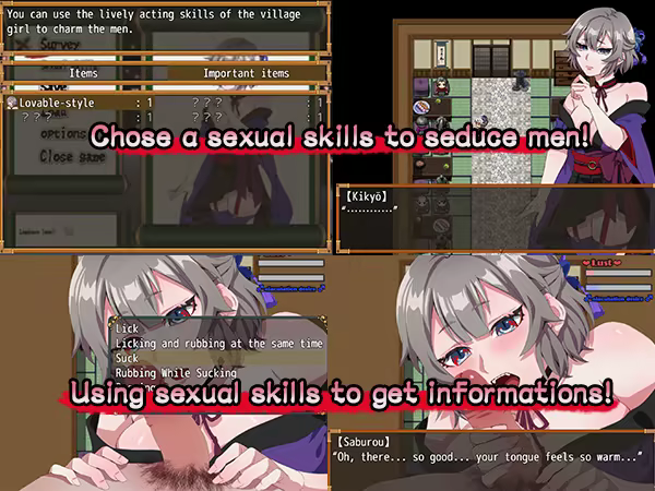 "Kikyō," a Kunoichi who lacks combat skills but excels in her unique ability - "sexual skills." In order to accomplish her mission, she must infiltrate the enemy group. Can you help Kikyo successfully fulfill her mission?