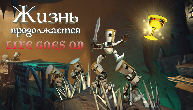 Life Goes On: Done to Death – трагикомический платформер про смелых, но глуповатых рыцарей, ищущих Чашу Жизни. Каждая головоломка в игре требует творческого применения тел погибших. Яму с кольями можно пройти по головам менее везучих товарищей. Вмороженное в глыбу льда тело – прекрасная подставка. Рыцарскими доспехами очень удобно замыкать электрическую цепь. Нажать труднодоступную кнопку можно выстрелив добровольцем из пушки. В этой игре смерть не препятствие, а единственный путь к победе.