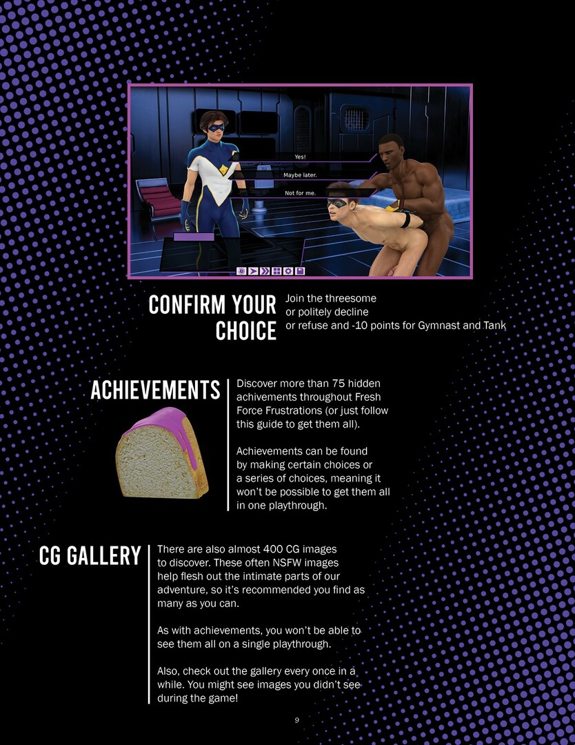 These 70+ pages guide you through most conversations, with the best responses, to help build trust with your teammates. Highlights places where your decisions will impact future endings or achievements.