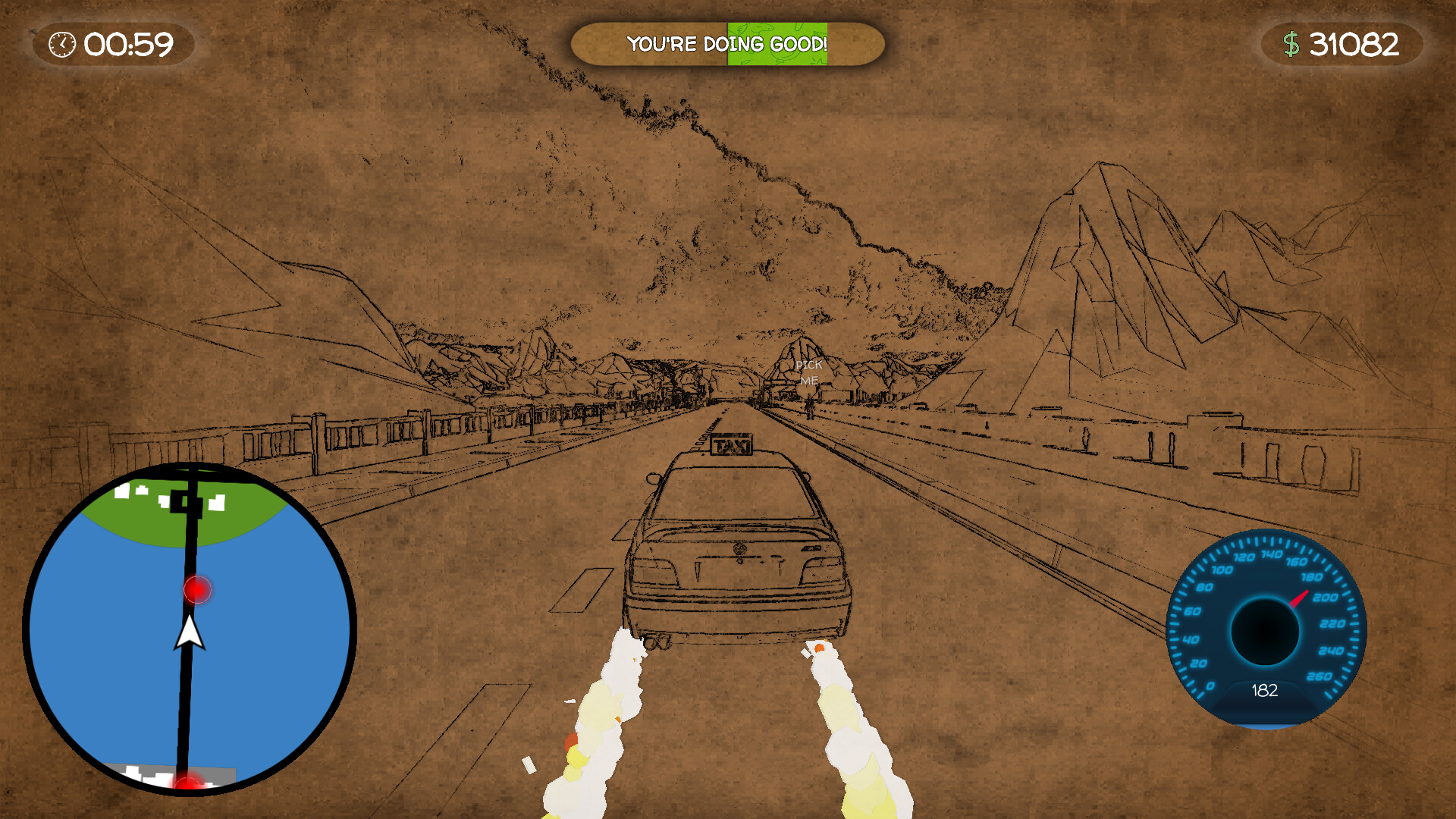Doodle Taxi's main thing is being a chill taxi driving simulator game. Enjoy this beautiful world as you cruise around and color it in while unraveling the story! Whether you want to drive around like a maniac or just chill out and listen to the bumping soundtrack, this is a great pick up and play driving game!