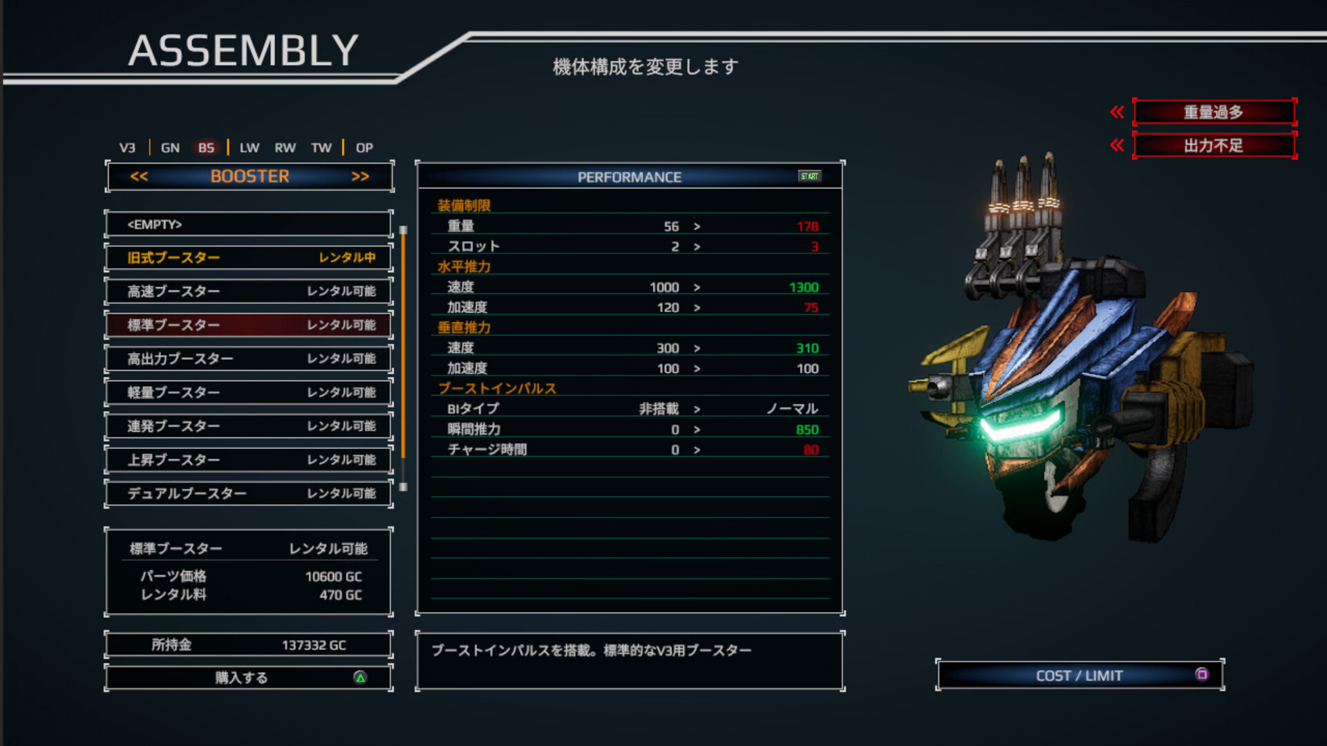 プレイヤーが駆る戦闘兵器「V3」は、パーツを組み合わせて自分好みにカスタマイズできる。パーツによって使用できるアクション自体にも変化があり、状況に応じた機体のカスタマイズがゲームの難易度を大きく左右する。