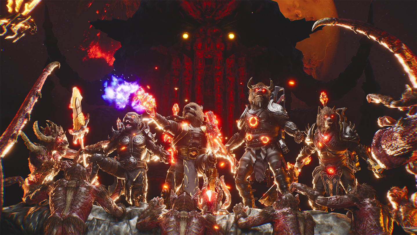 An intense hybrid of hack-and-slash melee and ranged weaponry, enhanced with feral abilities tied to your hero's animal lineage. Unleash your feral instincts in visceral combat, scavenge, craft, explore corrupted landscapes, and destroy the cosmic horrors threatening all life.
