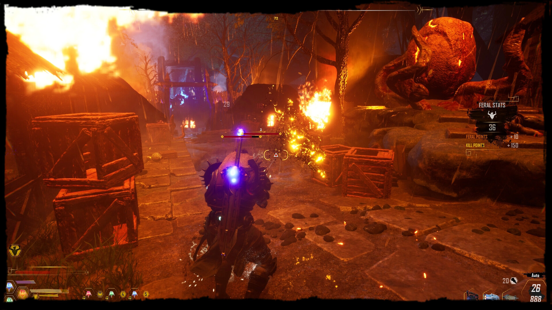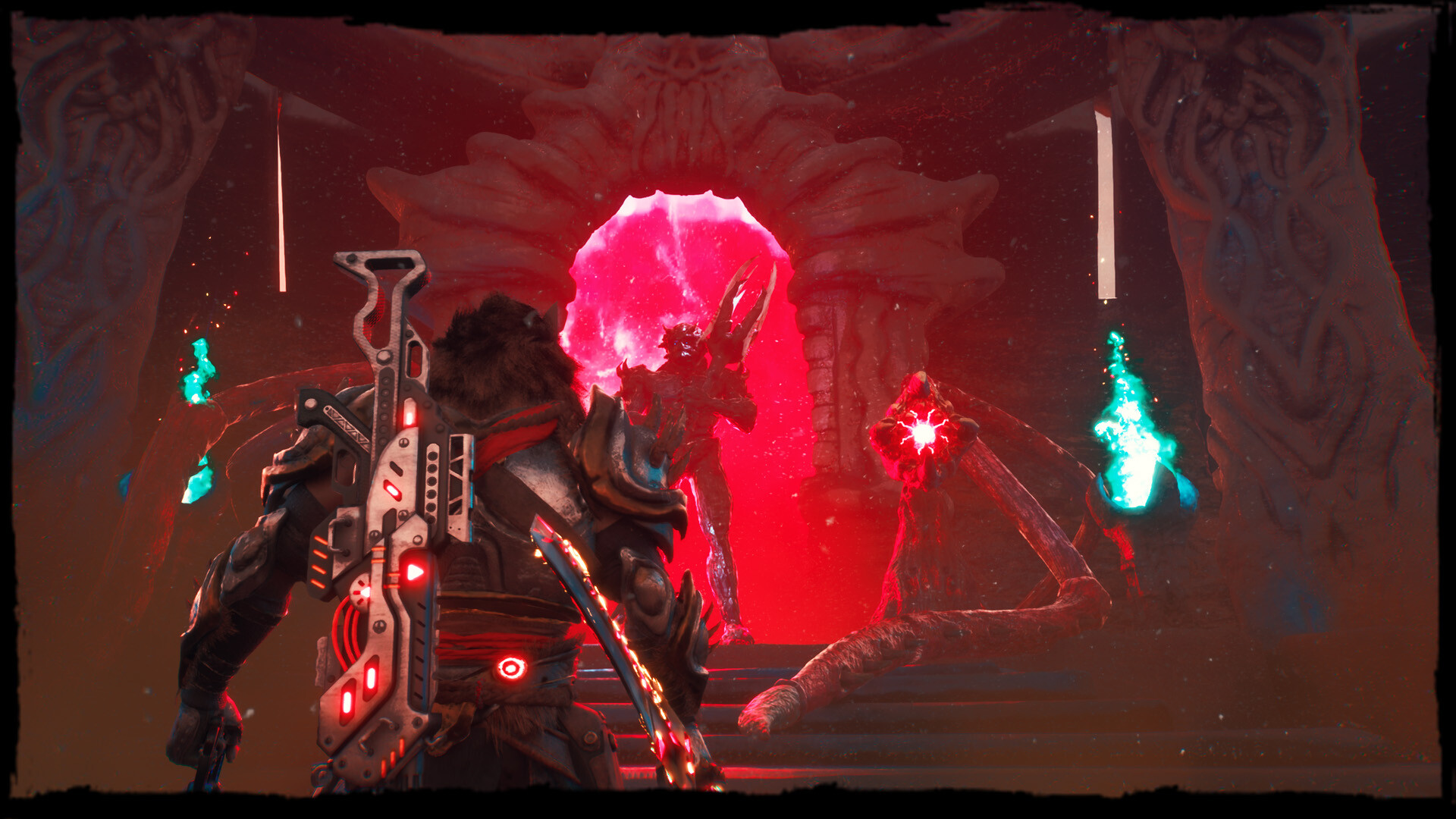 An intense hybrid of hack-and-slash melee and ranged weaponry, enhanced with feral abilities tied to your hero's animal lineage. Unleash your feral instincts in visceral combat, scavenge, craft, explore corrupted landscapes, and destroy the cosmic horrors threatening all life.