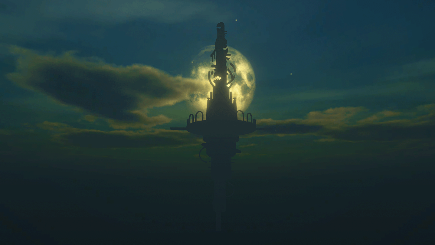 The game is set in an ancient ruin floating in the sky, and the player slides through the vast skies at their own will while searching for the Artifacts.
