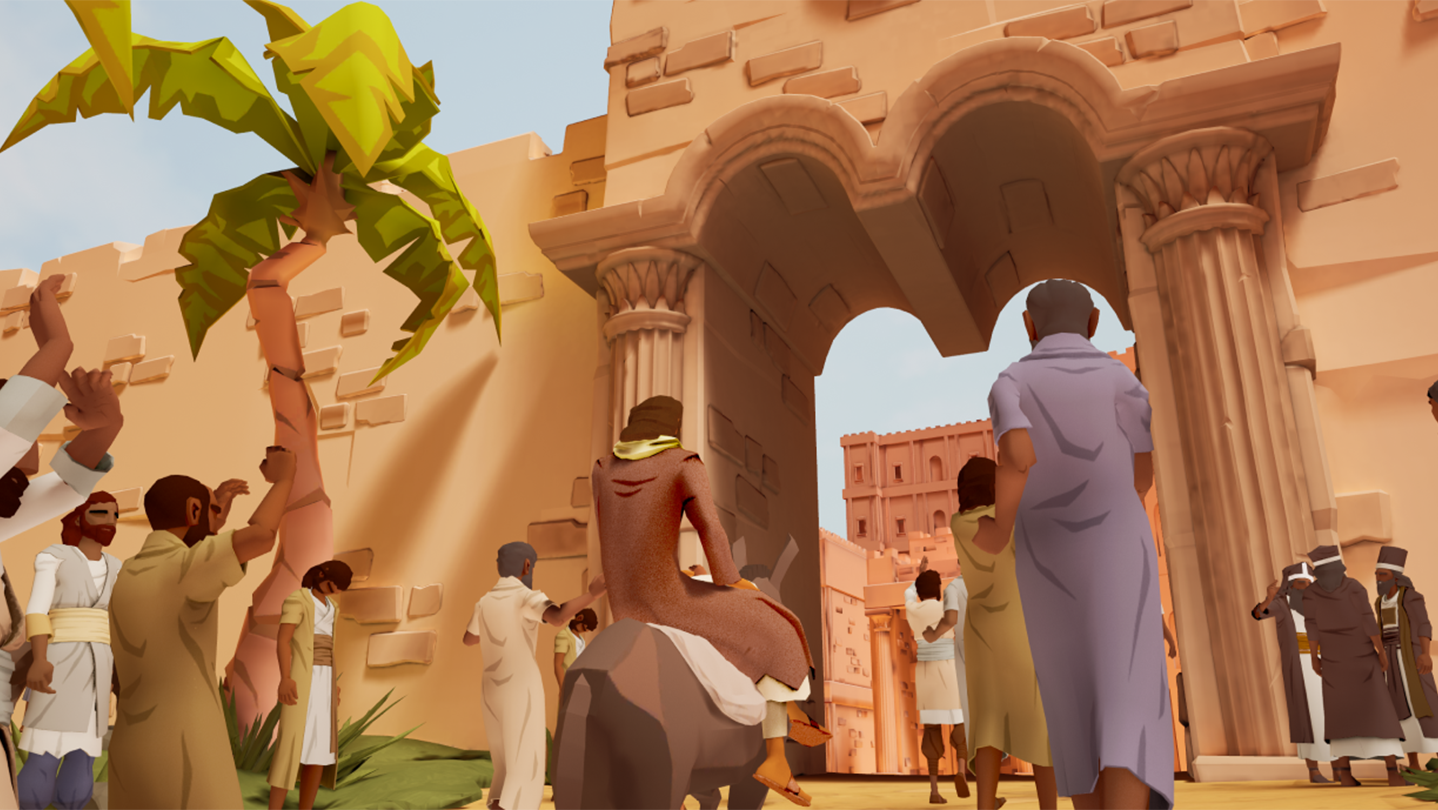 Enter Last Week of a King and follow Jesus as he rides into Jerusalem, confronts money lenders in the temple courts, and eats Passover with his disciples. Step into one of our animated videos and explore three scenes from the book of Luke in the first virtual reality short produced by BibleProject. Once you enter the experience, you can use your controllers to select from one of the three scenes. In each of the scenes, you will be able to walk around and look at your surroundings while you follow the story of Jesus' last week.