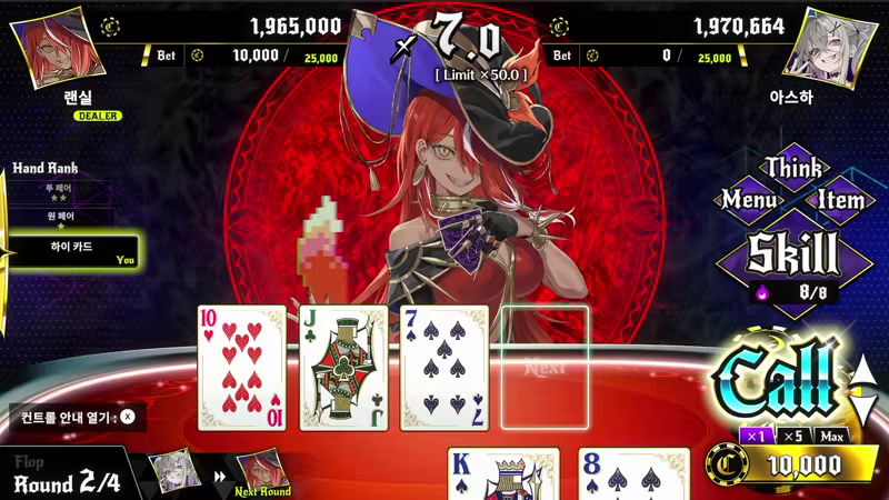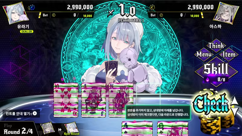 스킬을 사용하면 포커의 패를 컨트롤하거나 상대의 패를 간파하여 포커를 유리하게 진행할 수 있습니다.