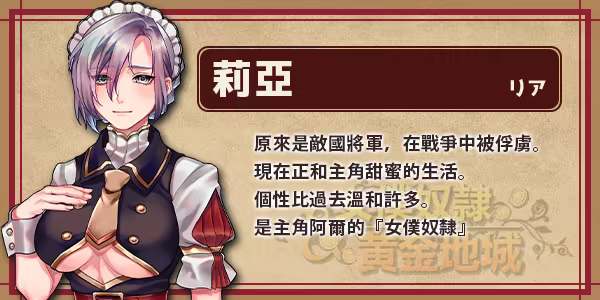 戰爭後,敵國女將軍「莉亞」竟成為了你的俘虜!? 為了讓身為奴隸女僕的莉亞重獲自由,必須在地城賺到一百萬才行,沒想到卻在地下城過起了甜蜜日子…?