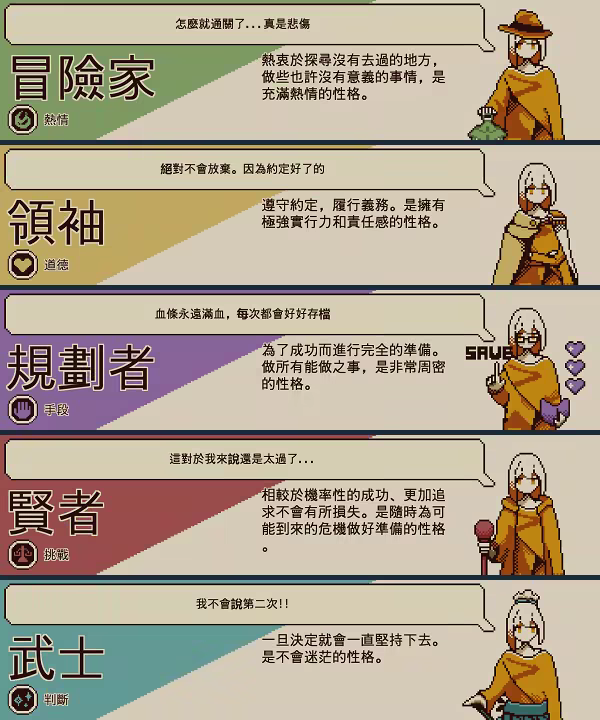 想要知道更詳細的性格內容,也可以多次重複遊玩。