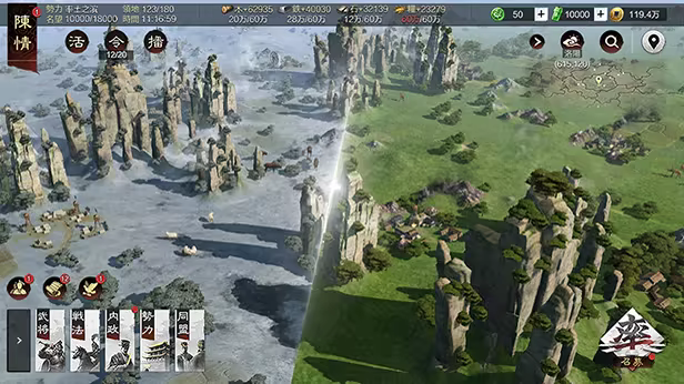 高度的技術升級!畫面全面升級!能夠沉浸式體驗自然變化,重現真實的古戰場。復原真實的自然景觀。季節變化、天氣變化、3D地形組合等,遊戲畫面更加豐富。