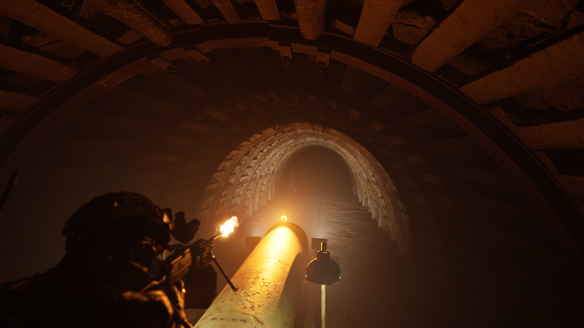 A third-person horror action game set in dark, atmospheric underground environments, blending psychological suspense with intense combat.