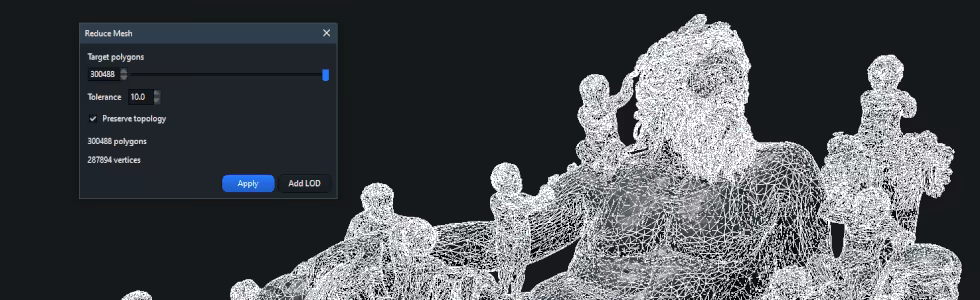 We've added a powerful new mesh reduction tool that decimates complex geometry, for easy model optimization or LOD creation.